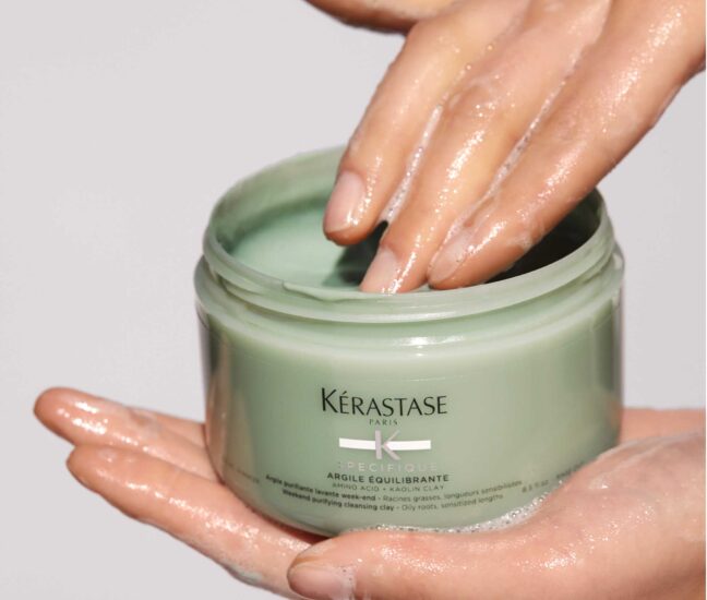 Argile crème lavante purifiante pour racines grasses et longueurs sensibilisées. Elle désincruste le cuir chevelu procurant un effet détoxifiant au cuir chevelu et aux longueurs grâce au Kaolin qui la compose. Sa formule enrichie en acide aminé régule le niveau de sébum en racines, procurant un effet volume.