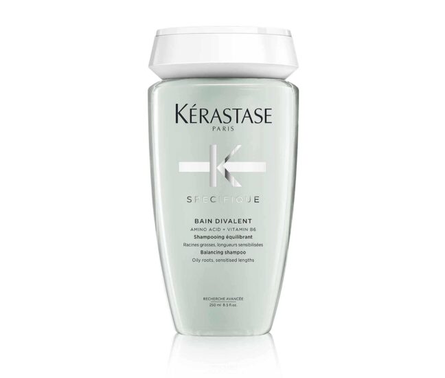 Shampoing crème enrichi en acide aminé et vitamine B6 pour cuir chevelu gras et longueurs sensibilisées. Il nettoie délicatement les cheveux en éliminant les impuretés et excès de sébum tout en respectant les longueurs afin de limiter leur désséchement. Les cheveux sont plus voluminueux en racines (+61,5%) et le démêlage est facilité. Grâce à son pouvoir hydratant, les longueurs restent brillantes et douces (+44%). Son parfum emblématique aux notes de basilic, de freesia et de bois de santal procure une sensation de fraîcheur et de tonicité.
