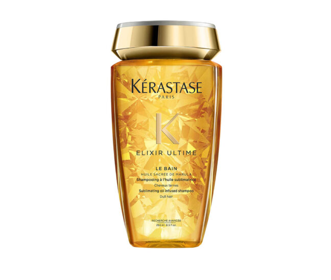 Le Bain Elixir Ultime de Kérastase aide les cheveux à retrouver éclat et tonus grâce à une combinaison d’huiles précieuses. Ce shampoing hydratant nourrit la fibre de l’intérieur pour la renforcer de façon durable.
