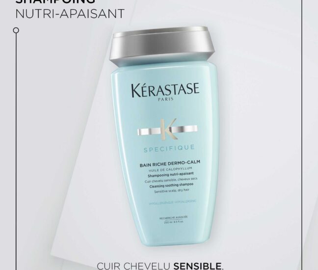 Le Bain Riche Dermo-Calm de la gamme Spécifique de Kérastase apaisant pour le cuir chevelu irrité et sensibilisé. Hydratant et nourrissant, ce shampoing pour cheveux secs calme les démangeaisons et laisse les cheveux doux.